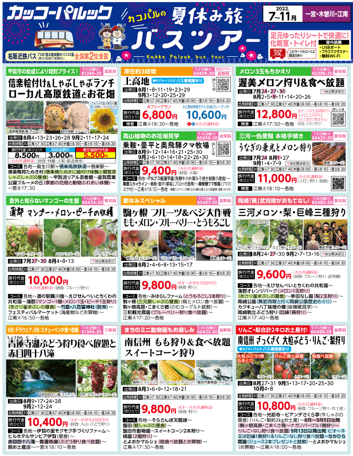 2022年 夏休み旅バスツアー(7-11月)(江南一宮版)1