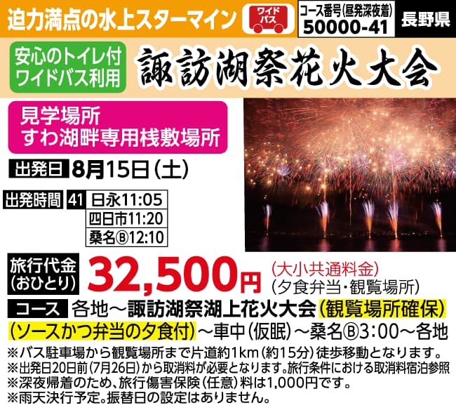 諏訪湖祭花火大会 トイレ付ワイドバス利用