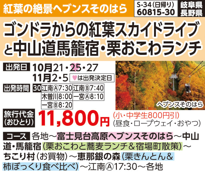 ゴンドラからの紅葉スカイドライブと中山道馬籠宿