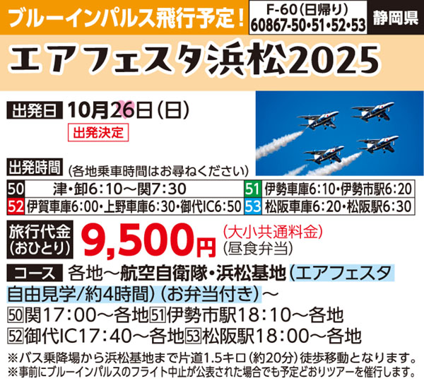 ※当ツアーは弊社主催の旅行企画であり、浜松基地は一切関与しておりません。