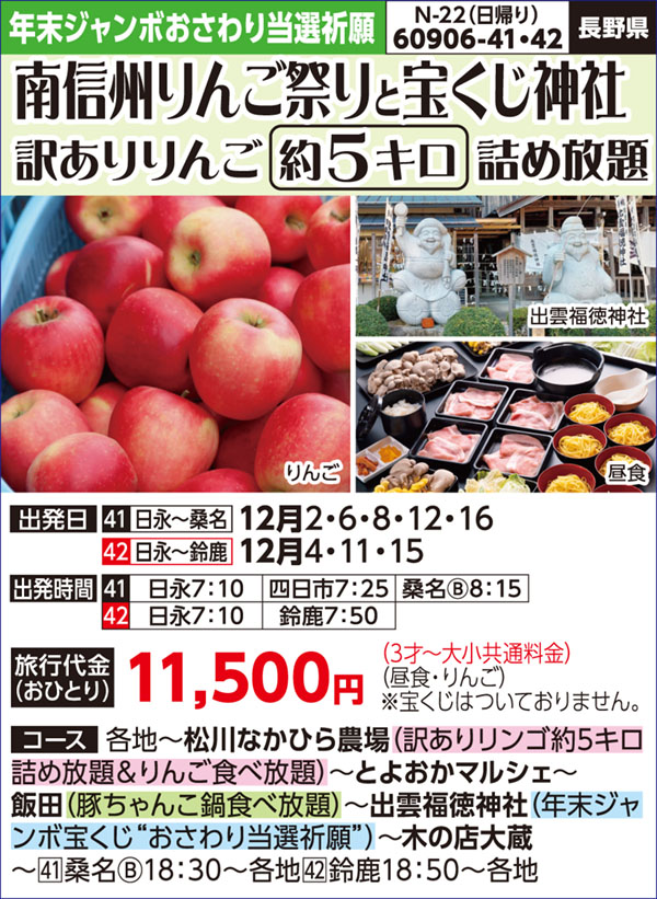 60906-41 | 日帰りバスの旅 | 11,500円 ~ 11,500円 | 2025/12/02 ~ 2025/12/16 |