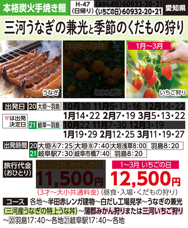 60932-20 | 日帰りバスの旅 | 12,500円 ~ 12,500円 | 2026/01/14 ~ 2026/03/22 |