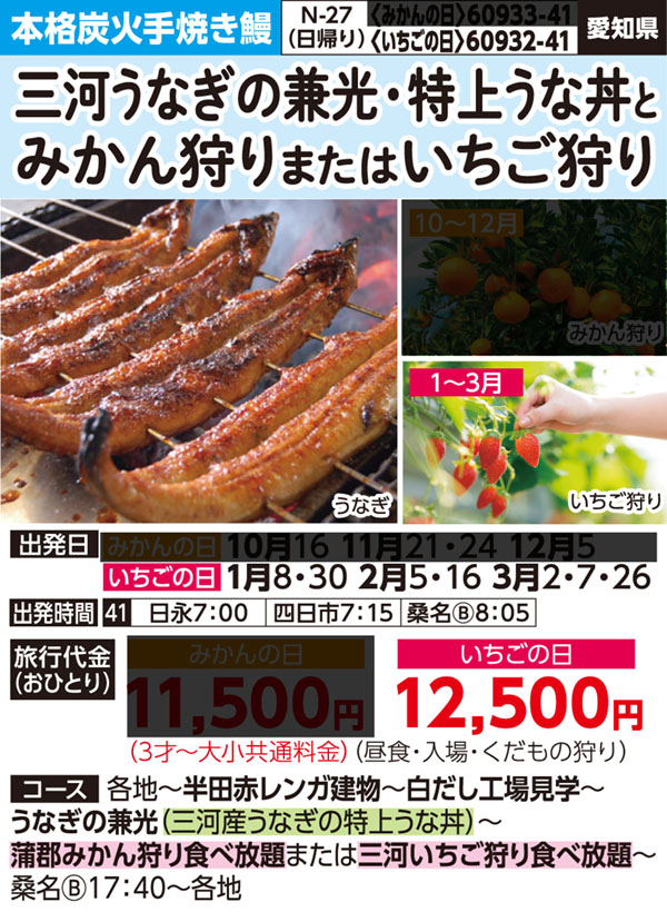 60932-41 | 日帰りバスの旅 | 12,500円 ~ 12,500円 | 2026/01/08 ~ 2026/03/26 |