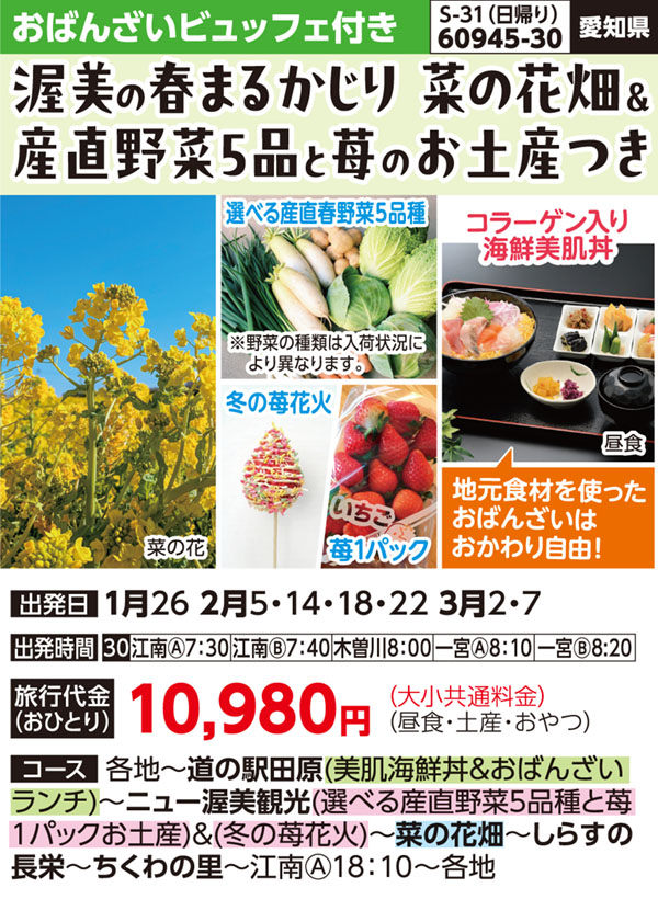 ―★ニュー渥美観光【冬の苺花火おやつ付き】&