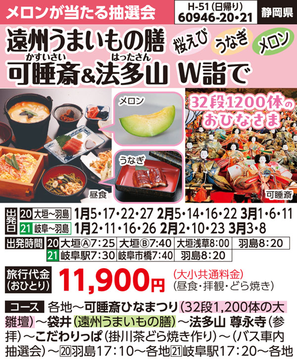60946-21 日帰りバスの旅 11,900円 ~ 11,900円 2026/01/02 ~ 2026/03/08