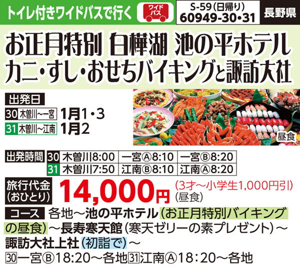 カニ・すし・おせちバイキング <トイレ付きワイドバスで行く>