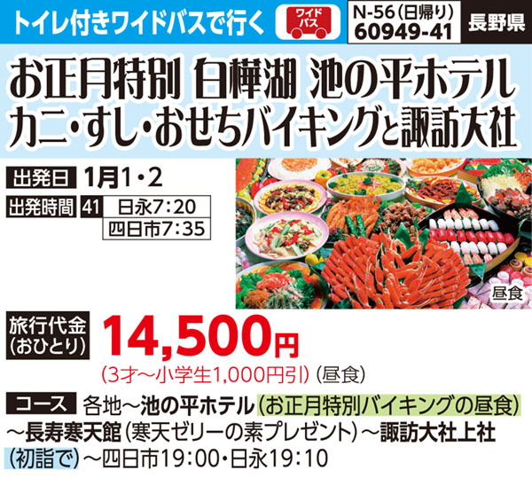 カニ・すし・おせちバイキング <トイレ付きワイドバスで行く>