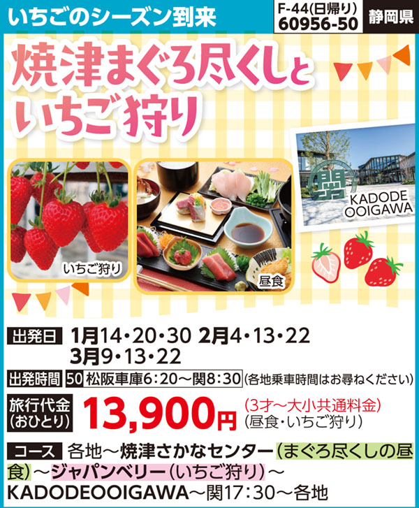 60956-50 | 日帰りバスの旅 | 13,900円 ~ 13,900円 | 2026/01/14 ~ 2026/03/22 |