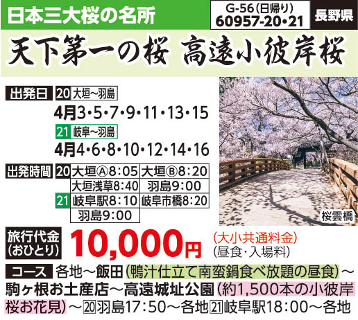 | 種別 | 日帰りバスの旅 |