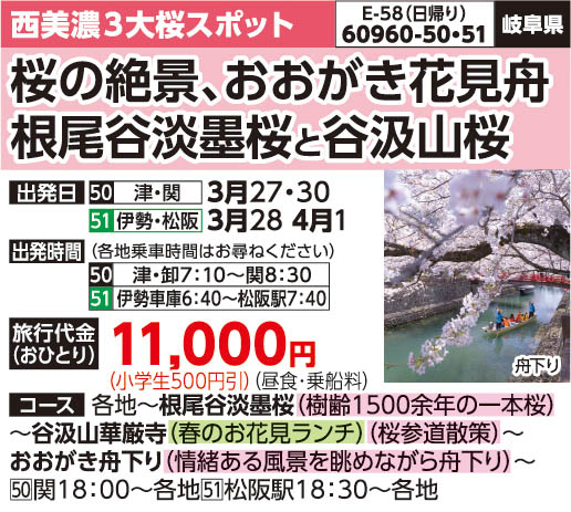 おおがき花見舟と根尾谷淡墨桜と谷汲山桜