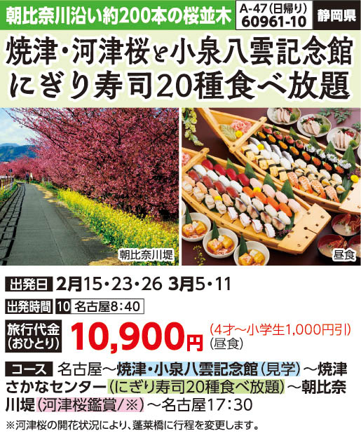 焼津・河津桜とにぎり寿司20種食べ放題