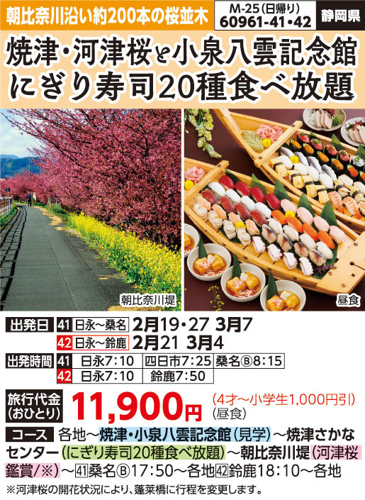 焼津・河津桜とにぎり寿司20種食べ放題