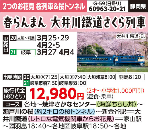 ―新金谷駅==★大井川鐵道【レトロな電気機関車からお花見/約30分】==家山駅――