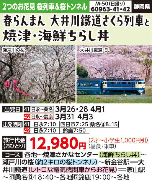 60963-41 日帰りバスの旅 12,980円 ~ 12,980円 2026/03/26 ~ 2026/04/01