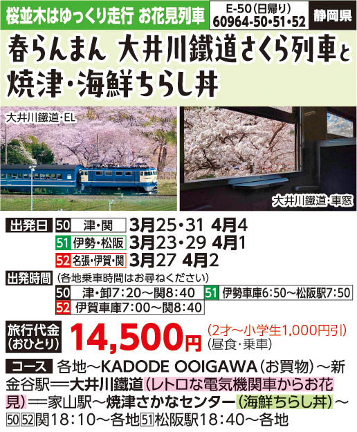※催行確定の場合、桜の開花状況に関わらずツアーは催行いたします。