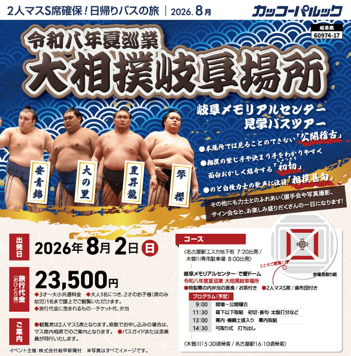 【令和八年夏巡業 大相撲岐阜場所/2人マスS席(座布団付き)】