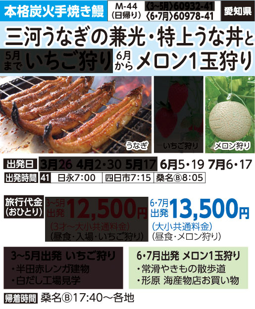 ※昼食でうなぎが苦手な方は豚ひつまぶしへ変更できます。事前にお申し出ください。