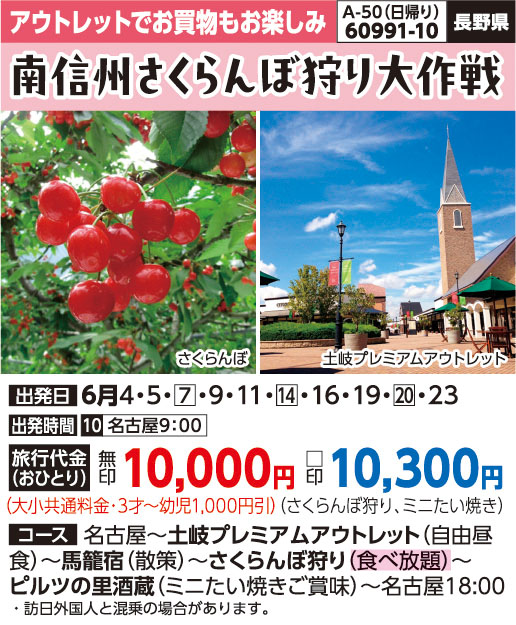 ※さくらんぼ狩りの農園は飯田・高森・松川・天竜峡地区となります(当日のご案内)