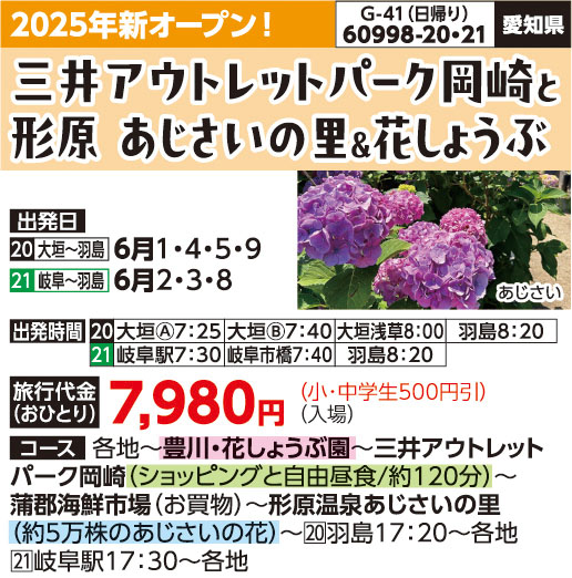 60998-21 日帰りバスの旅 7,980円 ~ 7,980円 2026/06/02 ~ 2026/06/08