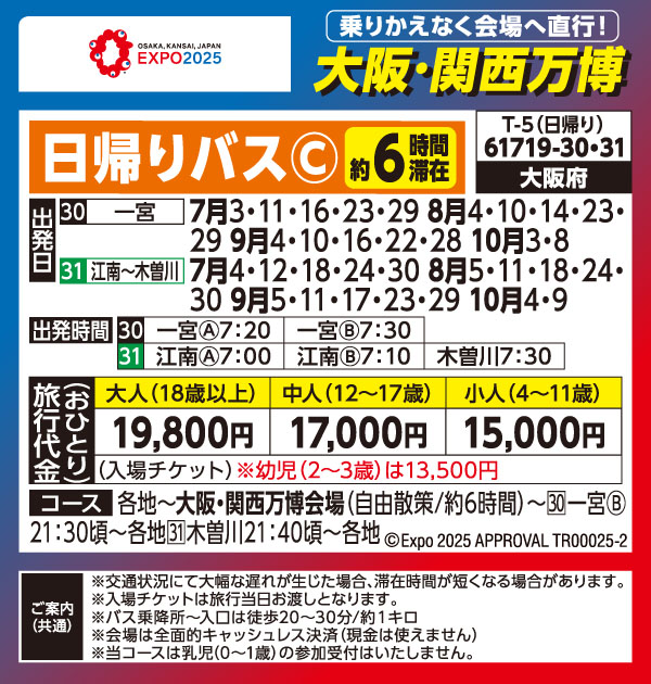 大阪・関西万博日帰りバス【C】 約6時間滞在