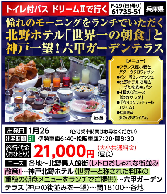 ワイドバス:北野ホテル「世界一の朝食」と六甲ガーデンテラス