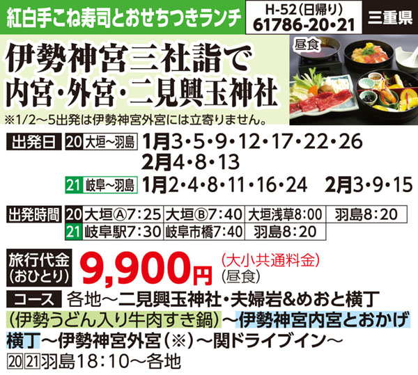 61786-21 日帰りバスの旅 9,900円 ~ 9,900円 2026/01/02 ~ 2026/02/15