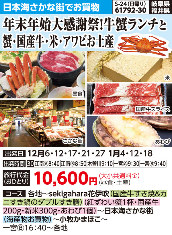 61792-30 日帰りバスの旅 10,600円 ~ 10,600円 2025/12/06 ~ 2026/01/18