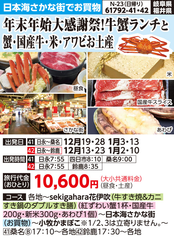 ※1/2.3は小牧かまぼこへは立寄りません。ちくわプレゼントも付きません。