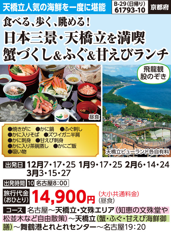 天橋立を満喫 蟹づくし&ふぐ&甘えびランチ