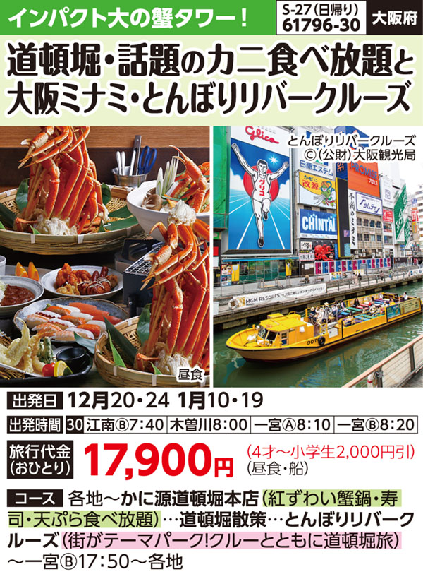 ――★かに源道頓堀本店(紅ずわい蟹鍋・寿司・天ぷらなど食べ放題/約90分)・・・・