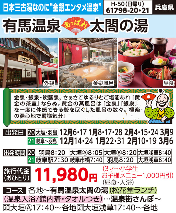 ★有馬温泉太閤の湯(昼食・入浴)・・温泉街散策(滞在約3時間20分)――――