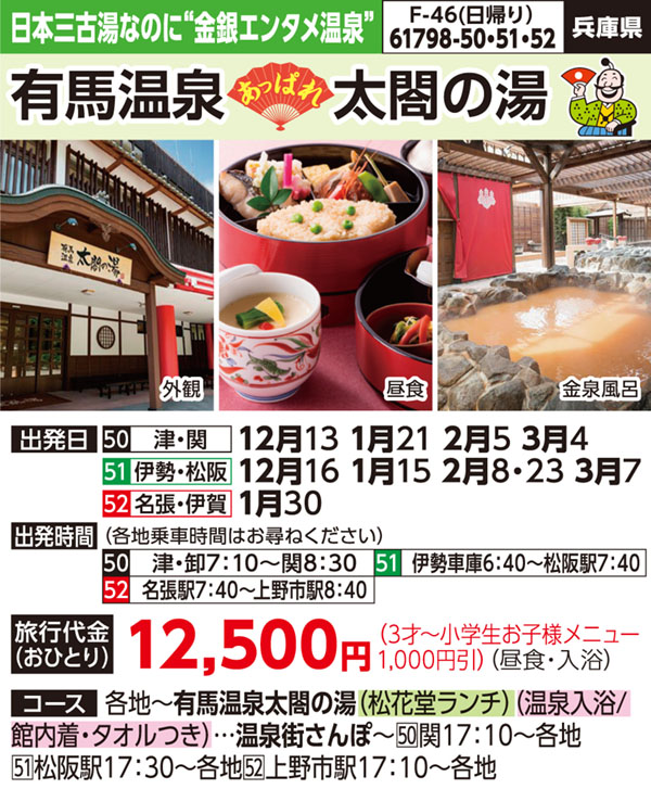 ★有馬温泉太閤の湯(昼食・入浴)・・温泉街散策(滞在約3時間20分)――――