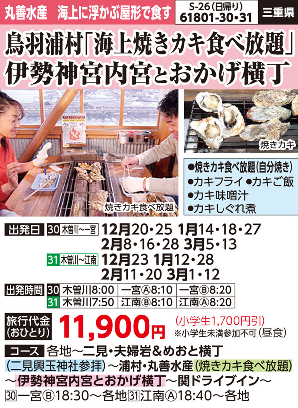 61801-31 | 日帰りバスの旅 | 11,900円 ~ 11,900円 | 2025/12/23 ~ 2026/03/12 |