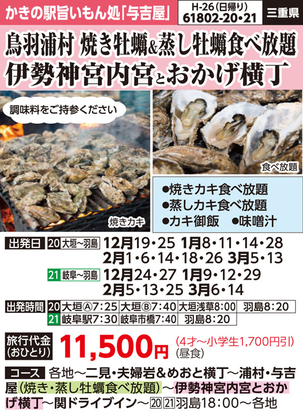 焼きカキ・蒸しカキ食べ放題、食べきりでカキご飯、味噌汁