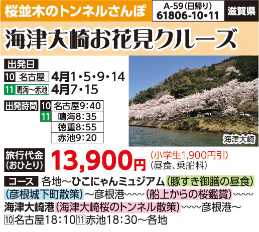 ――彦根港(13:30発)~~船上から眺める海津大崎のお花見遊覧~~