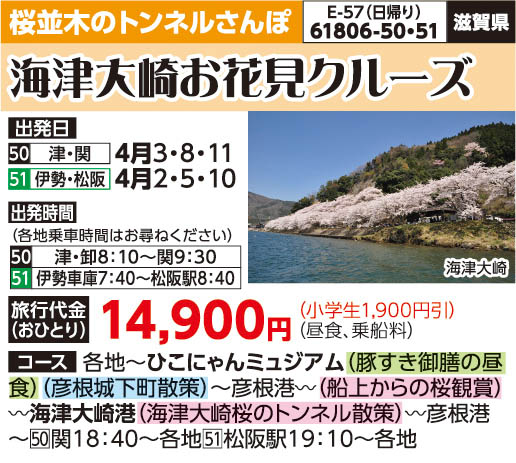 ――彦根港(13:30発)~~船上から眺める海津大崎のお花見遊覧~~