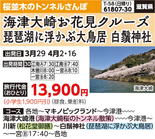 ※運休となった場合は、バスでの海津大崎の桜並木の通り抜けに変更いたします。
