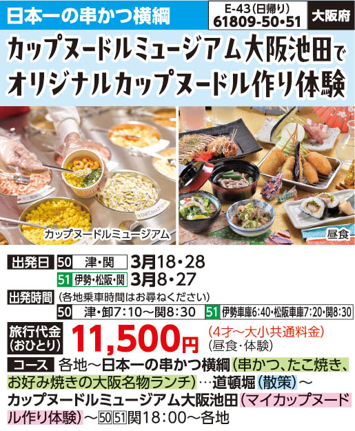 61809-50 日帰りバスの旅 11,500円 ~ 11,500円 2026/03/18 ~ 2026/03/28