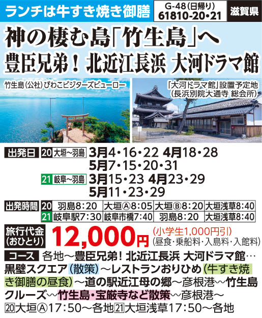 61810-21 日帰りバスの旅 12,000円 ~ 12,000円 2026/03/15 ~ 2026/05/29