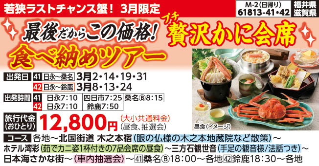 若狭 プチ贅沢かに会席食べ納めツアー
