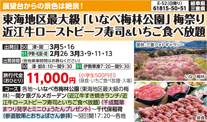 ※催行確定の場合、梅の開花状況に関わらずツアーは催行します。