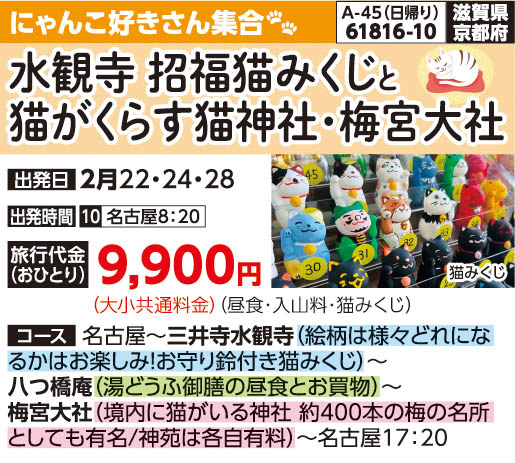 催行決定 9,900円~9,900円 予約 乗車場所一覧 |