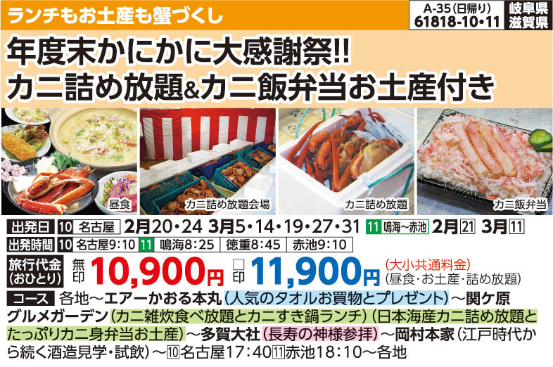 61818-10 日帰りバスの旅 10,900円 ~ 10,900円 2026/02/20 ~ 2026/03/31