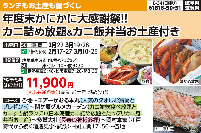 ※ミニ蟹飯弁当はご旅行当日中に召し上がってください。