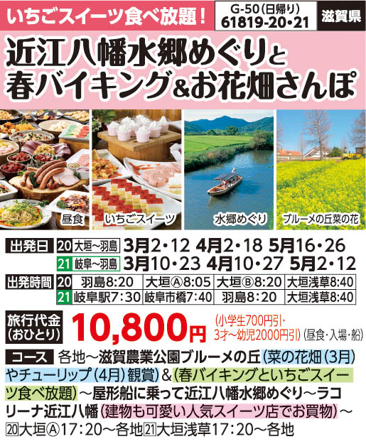 近江八幡水郷めぐりと春バイキング&お花畑さんぽ