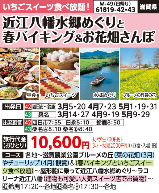 近江八幡水郷めぐりと春バイキング&お花畑さんぽ