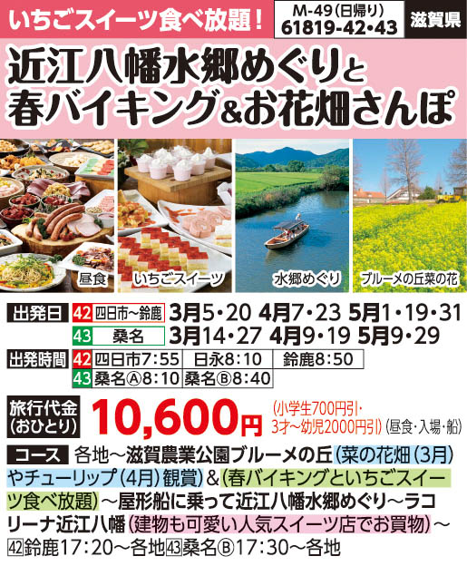 近江八幡水郷めぐりと春バイキング&お花畑さんぽ