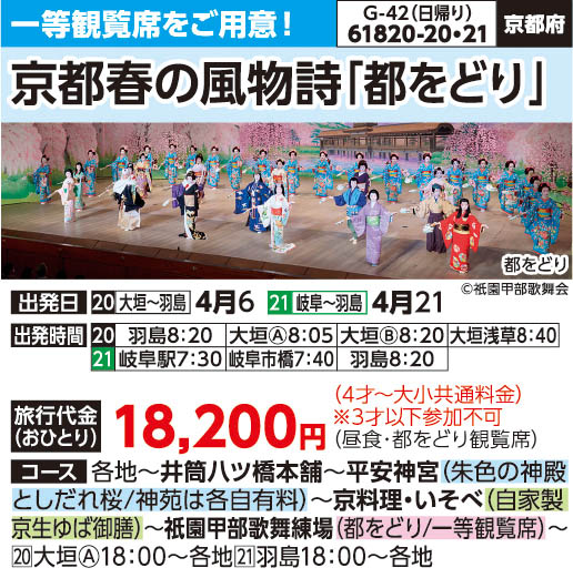 61820-20 日帰りバスの旅 18,200円 ~ 18,200円 2026/04/06 ~ 2026/04/06