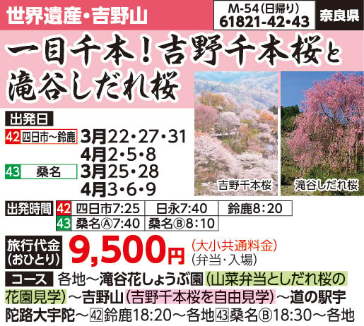 61821-43 日帰りバスの旅 9,500円 ~ 9,500円 2026/03/25 ~ 2026/04/09