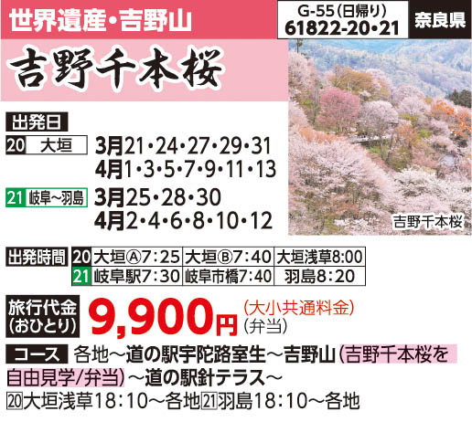 61822-20 日帰りバスの旅 9,900円 ~ 9,900円 2026/03/21 ~ 2026/04/13